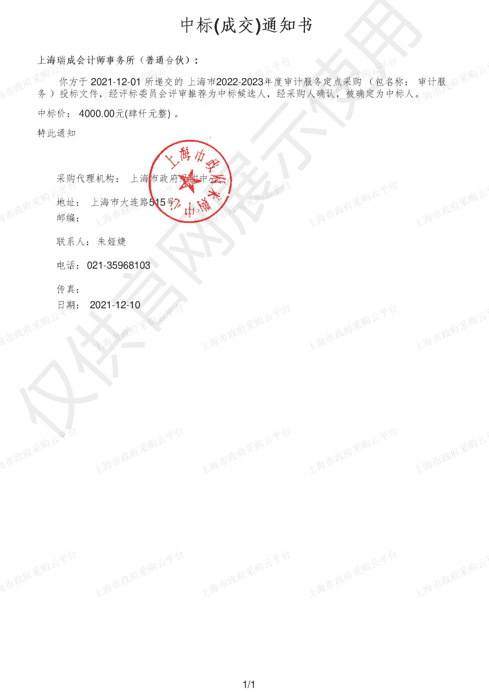 上海市2022-2023年度审计服务定点采购的中标(成交)结果公告